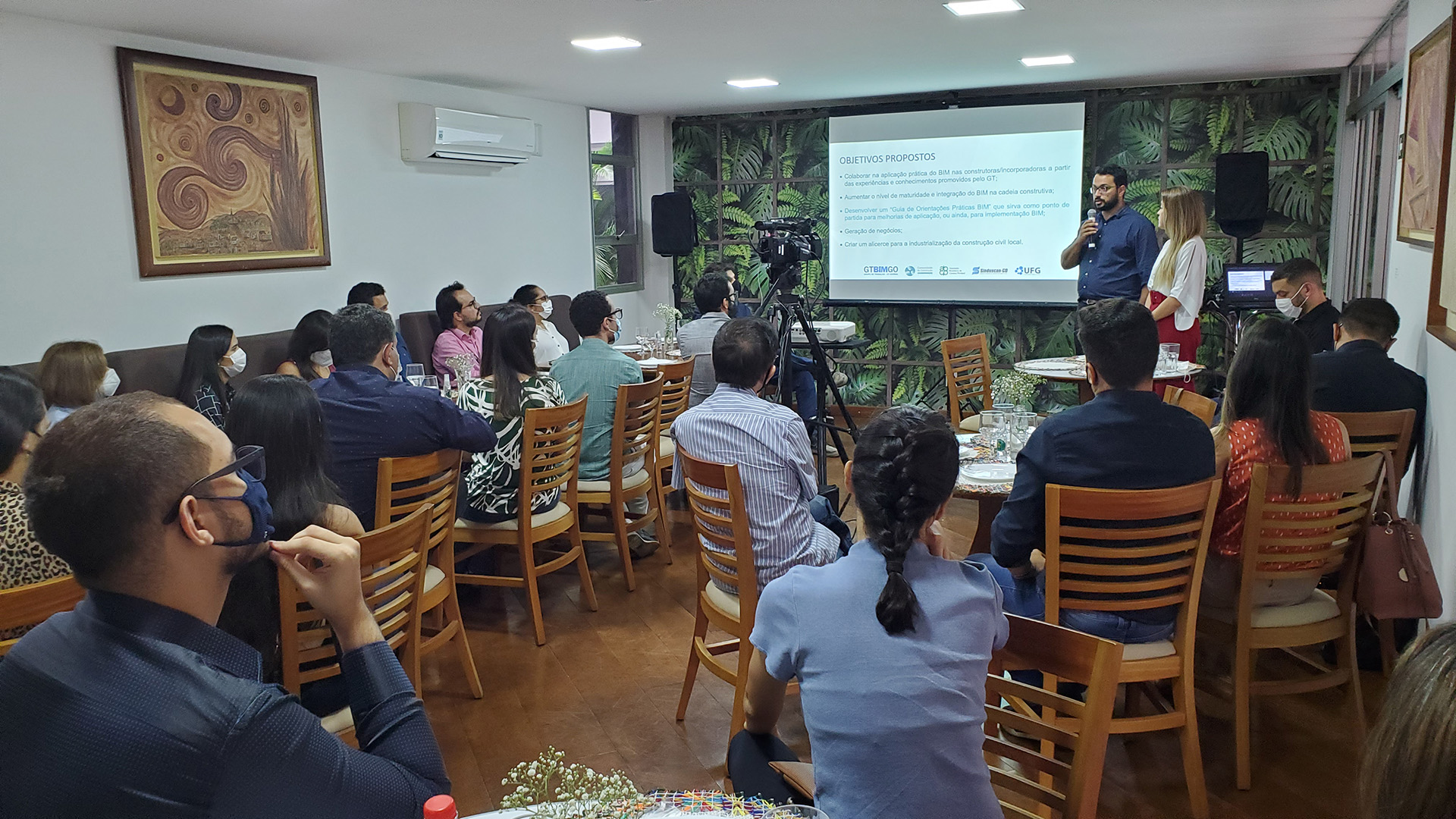 Dentre as ações que a Comunidade da Construção GO se propôs a realizar, em 2021, destaca-se o grupo de trabalho GT BIM GO. A metodologia de trabalho teve como objetivo colaborar na aplicação prática do BIM nas empresas, por meio do compartilhamento de experiências com grandes especialistas, referências locais e nacionais.